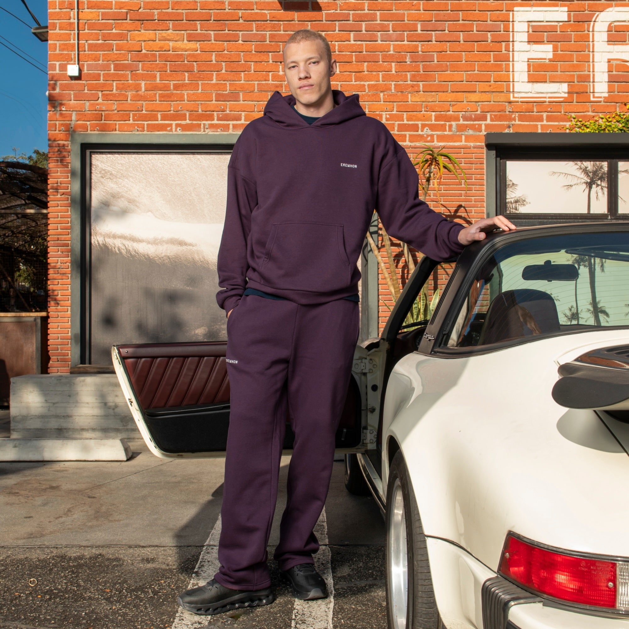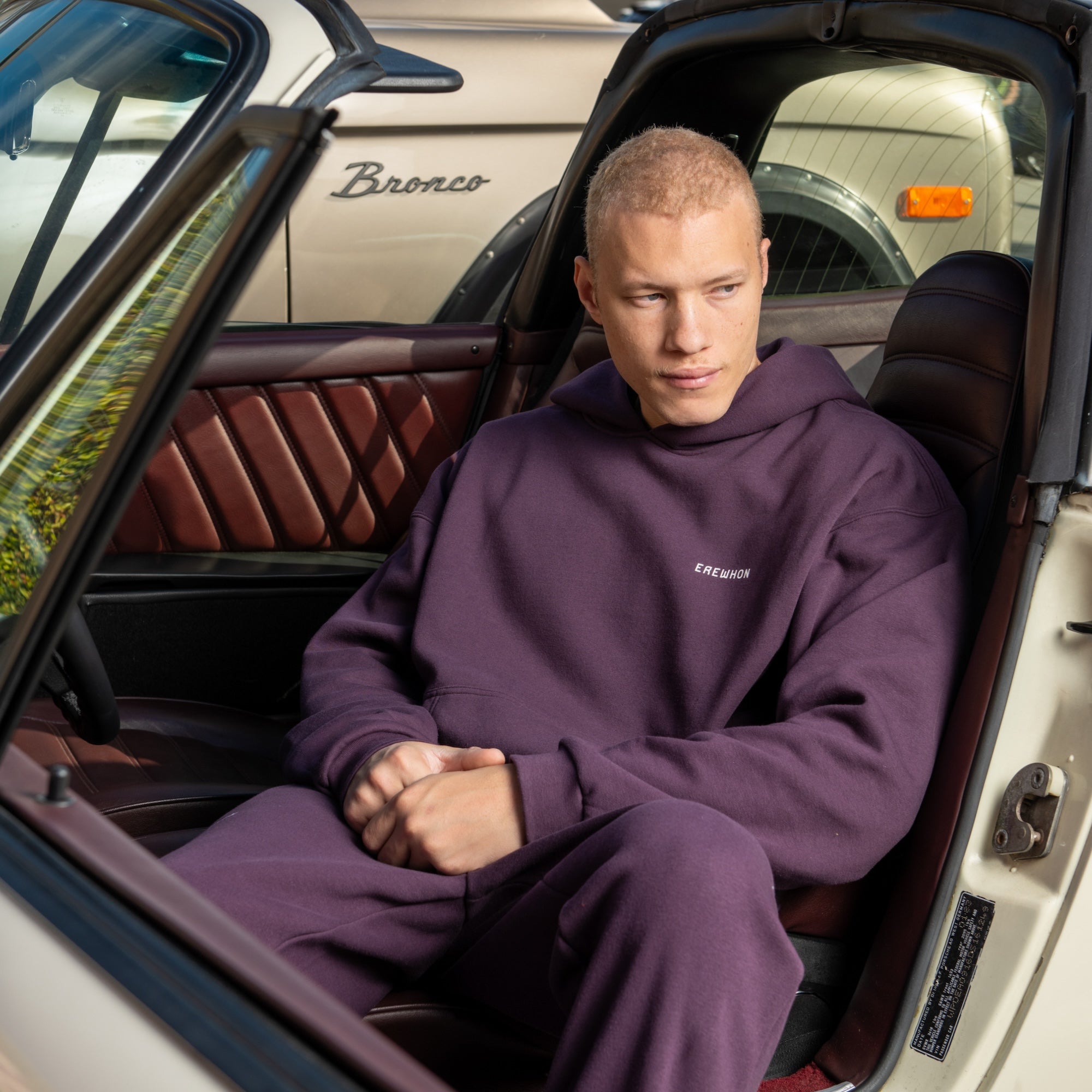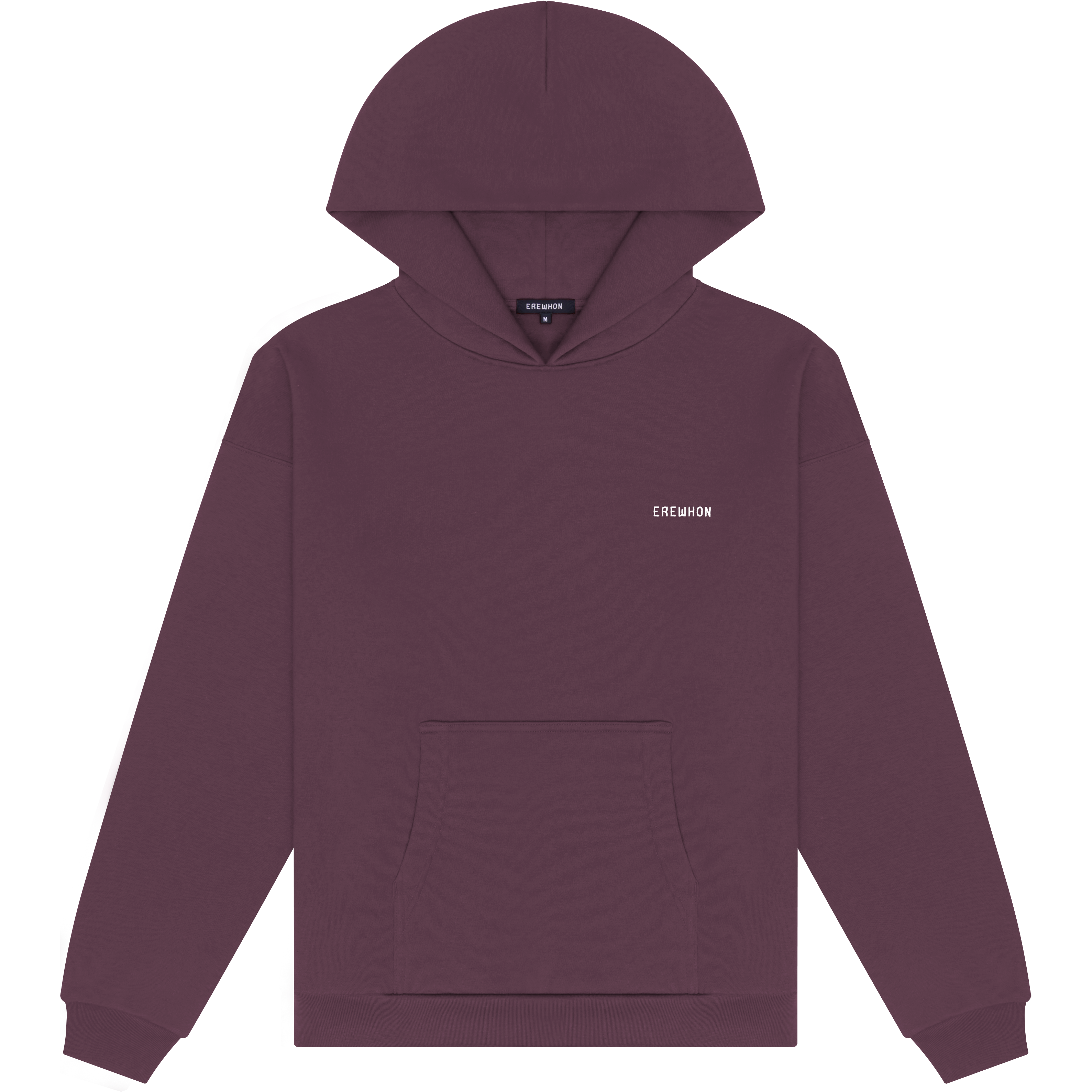 The Plum Hoodie features drop shoulders, deep arm holes, and a rib-knit waist hem. Ethically made from an organic cotton blend, in a relaxed cut for maximum comfort.