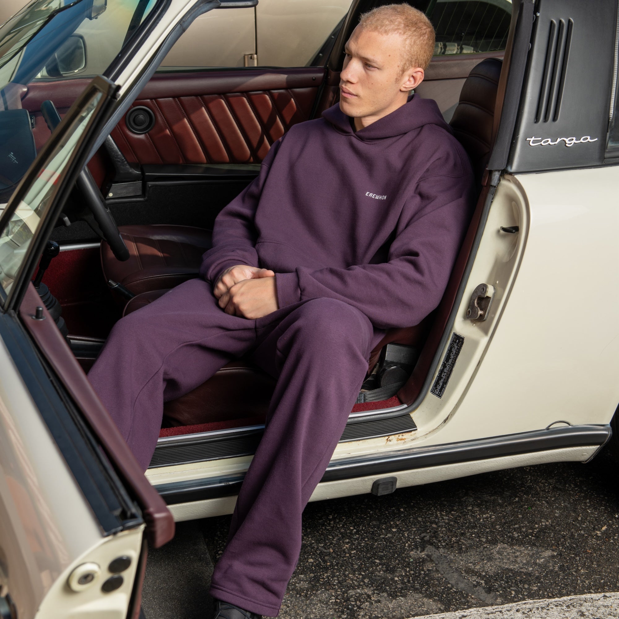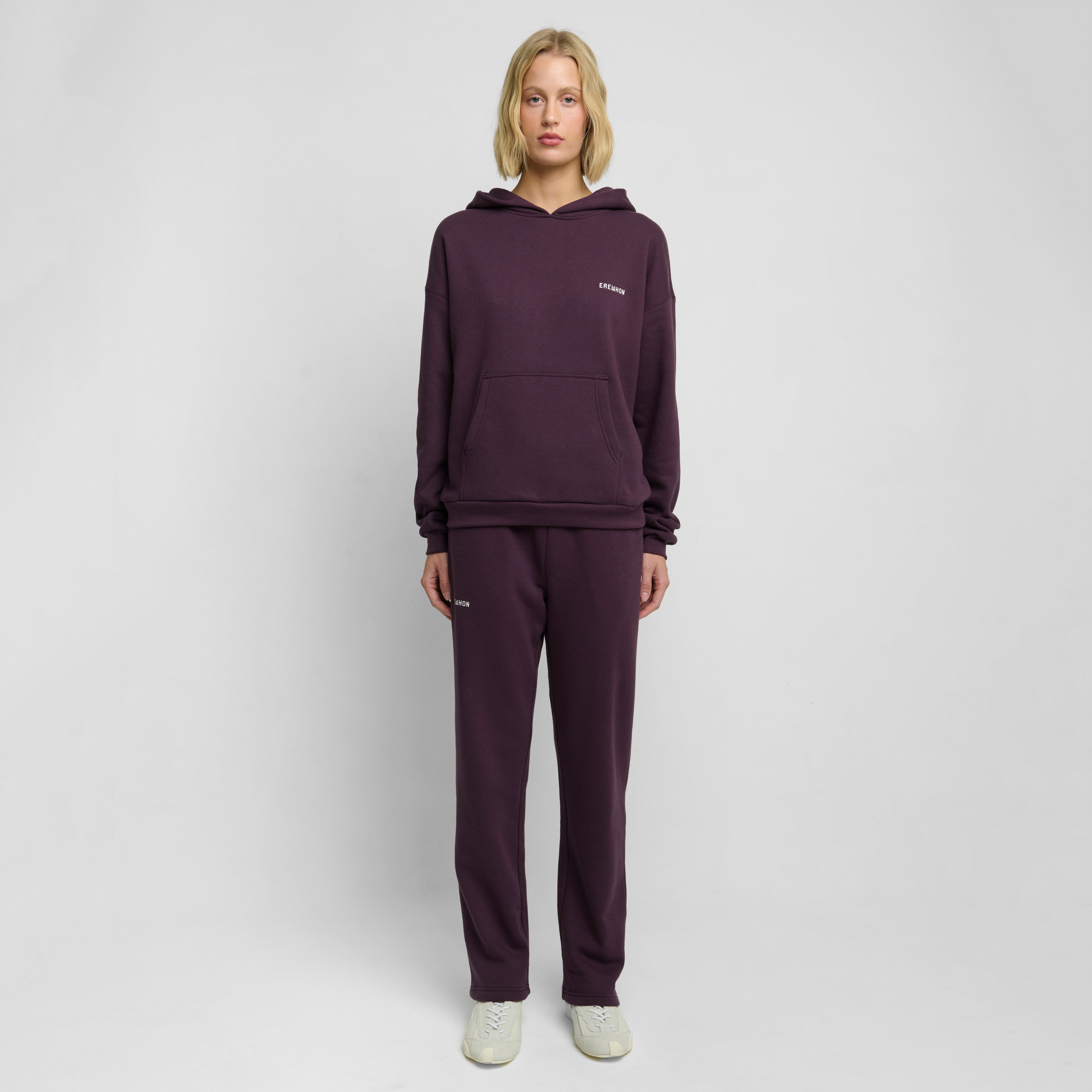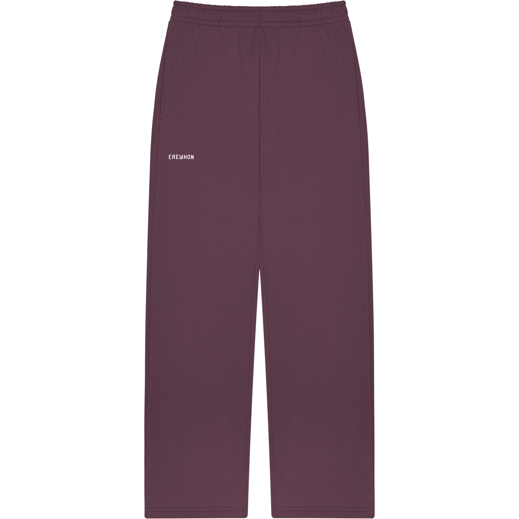 The Plum Sweatpants features side seam pockets, elongated drawstrings, and an encased elastic waistband. Ethically made from an organic cotton blend for maximum comfort.