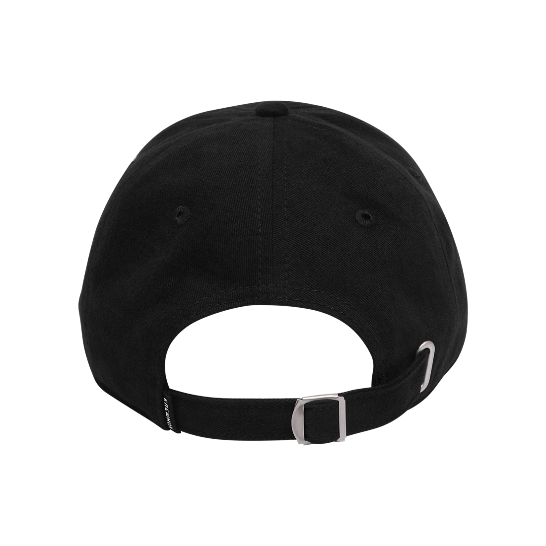 The Erewhon dad hat in black is designed for all-day wearing. Made from a brushed cotton twill it features a logo on the front, a curved brim, and an adjustable closure for all-day wearing.