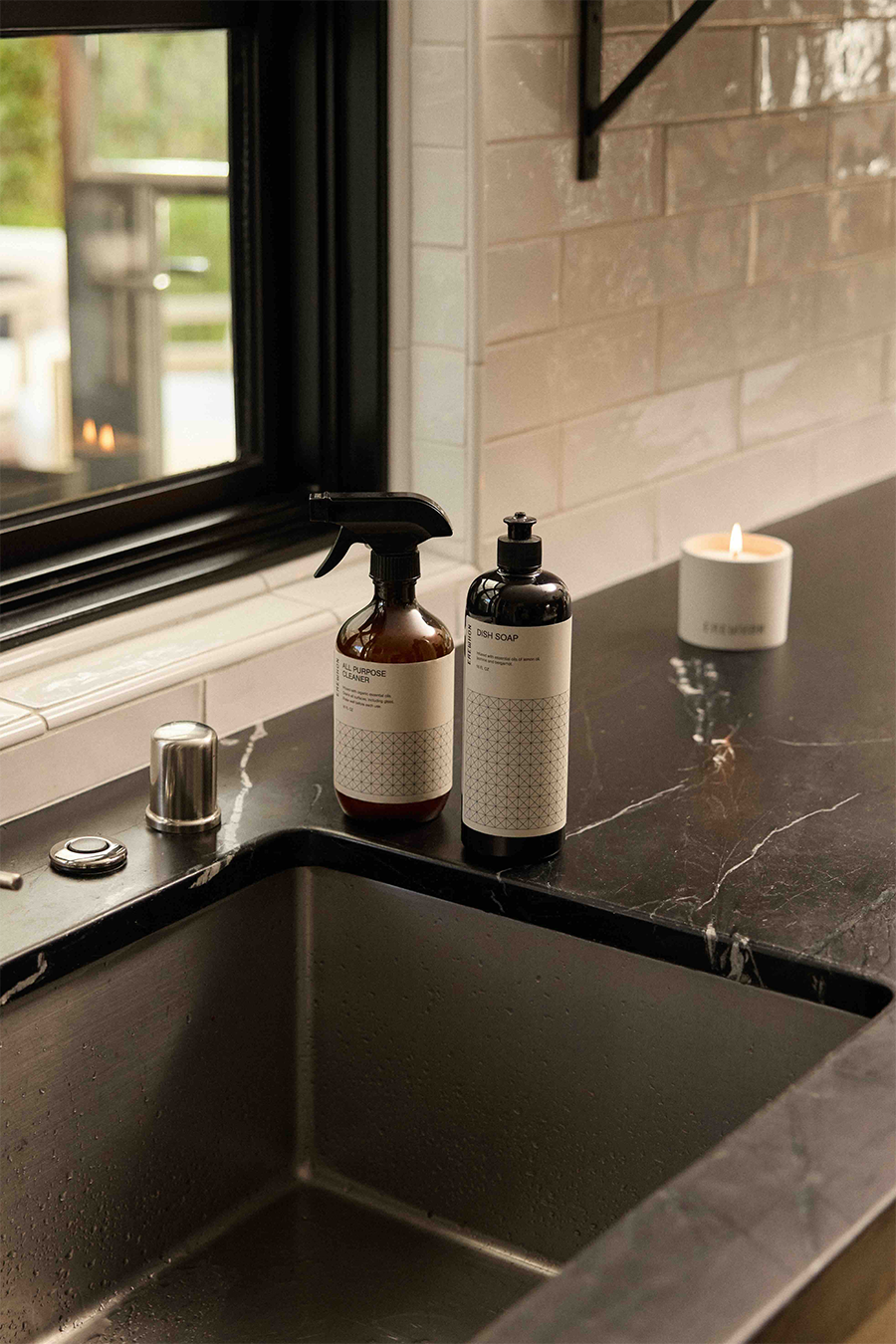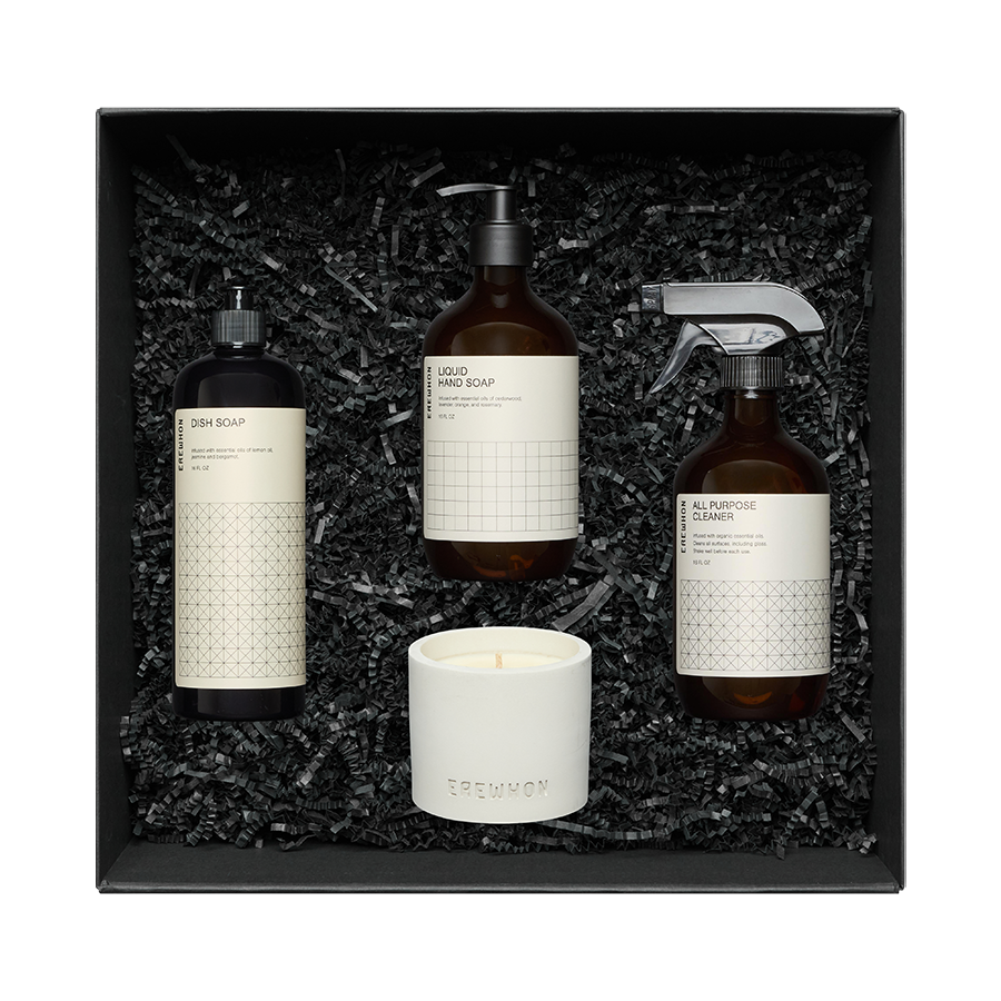 Refresh your kitchen with a selection of our favorite essential oil-infused cleaning products, free from parabens, phthalates, phosphates, and dyes. Complete with a Yuzu Hinoki candle made with soy wax, hand-poured in Los Angeles with a lead-free cotton wick.