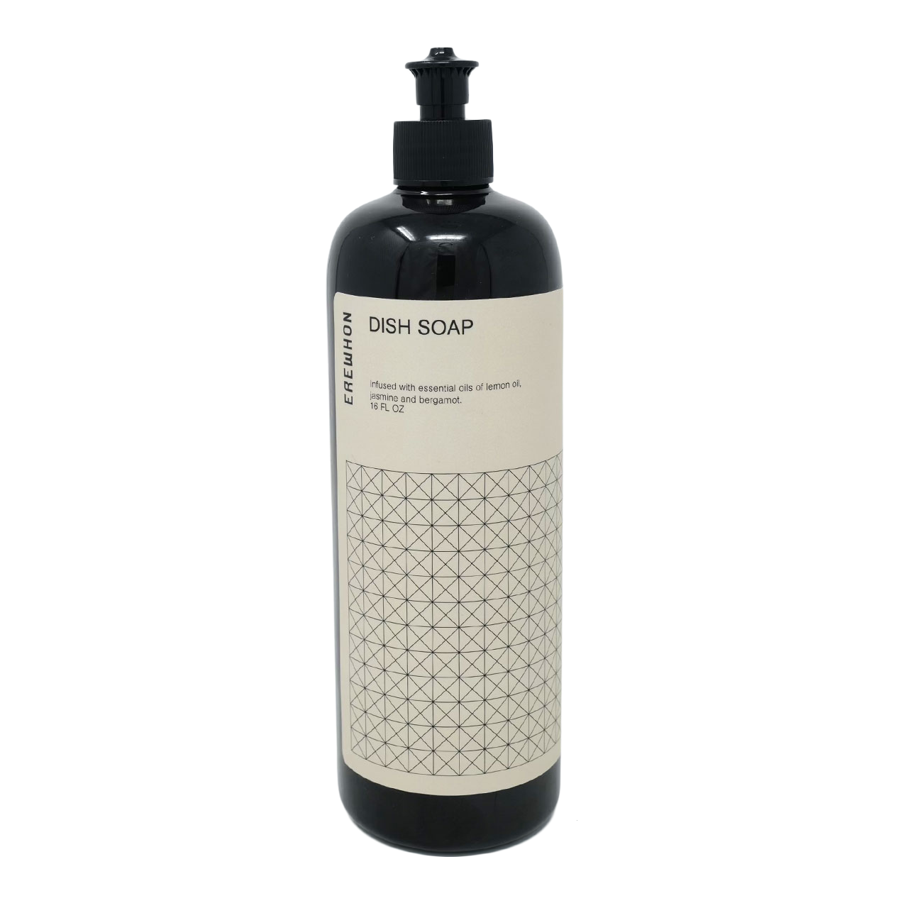 Introducing Erewhon Dish Soap, a 16 oz plant-based, vegan formula designed to effectively clean dishes while delighting your senses. Infused with lemon, jasmine, and bergamot essential oils, this uplifting soap leaves dishes refreshingly scented.