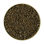 Royal White Sturgeon is also known as the other black gold. The medium to large sized egg ranges from light grey to amber in color creating a radiant marbling that is appealing to the eye. The sublime, farm-raised caviar from California has a smooth, nutty flavor with a creamy finish.