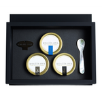Regiis Ova Caviar by Chef Thomas Keller ships its Temptuous Trio nationwide, perfect for those wanting to enjoy a variety of fine caviar. This caviar gift set includes three 30g tins of Ossetra, Royal, and Baerii caviars and includes a mother-of-pearl spoon and a branded caviar tin opener. This gift is set inside a beautiful, black branded gift box.
