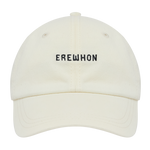 The Erewhon dad hat in white is designed for all-day wearing. Made from a brushed cotton twill it features a logo on the front, a curved brim, and an adjustable closure for all-day wearing.