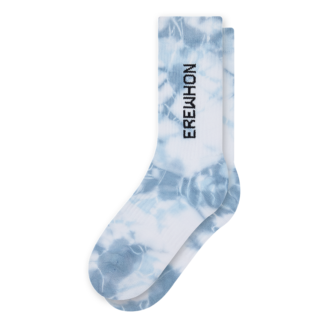 The Erewhon Tie-Dye sock in Mist Blue is made from 100% premium cotton for all-day comfort. Available while supplies last.