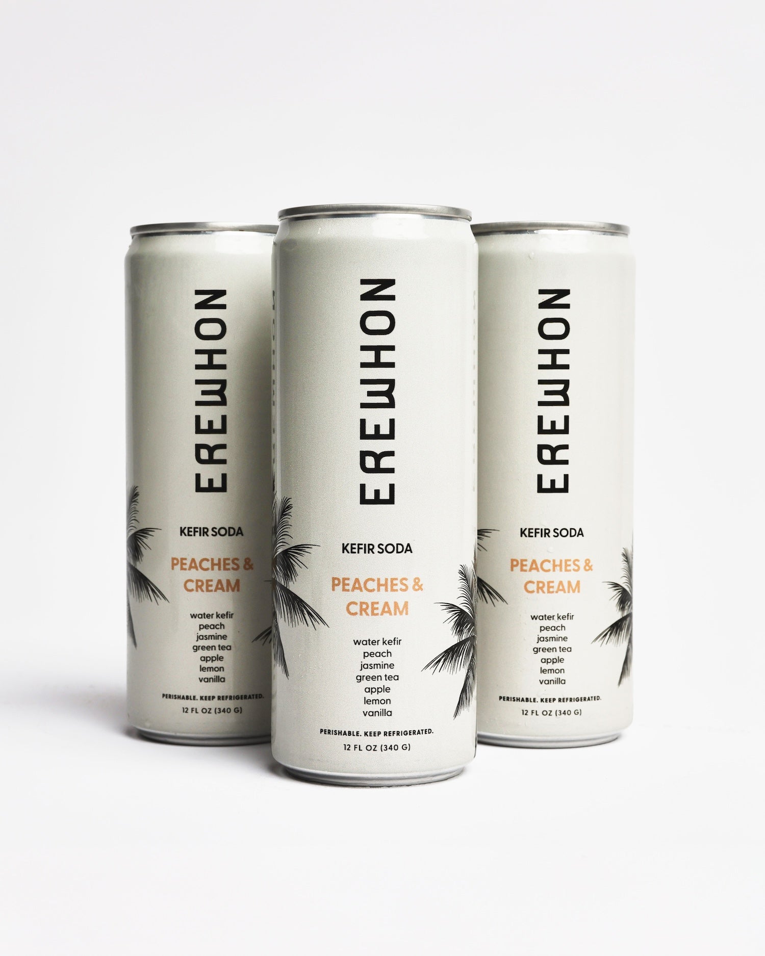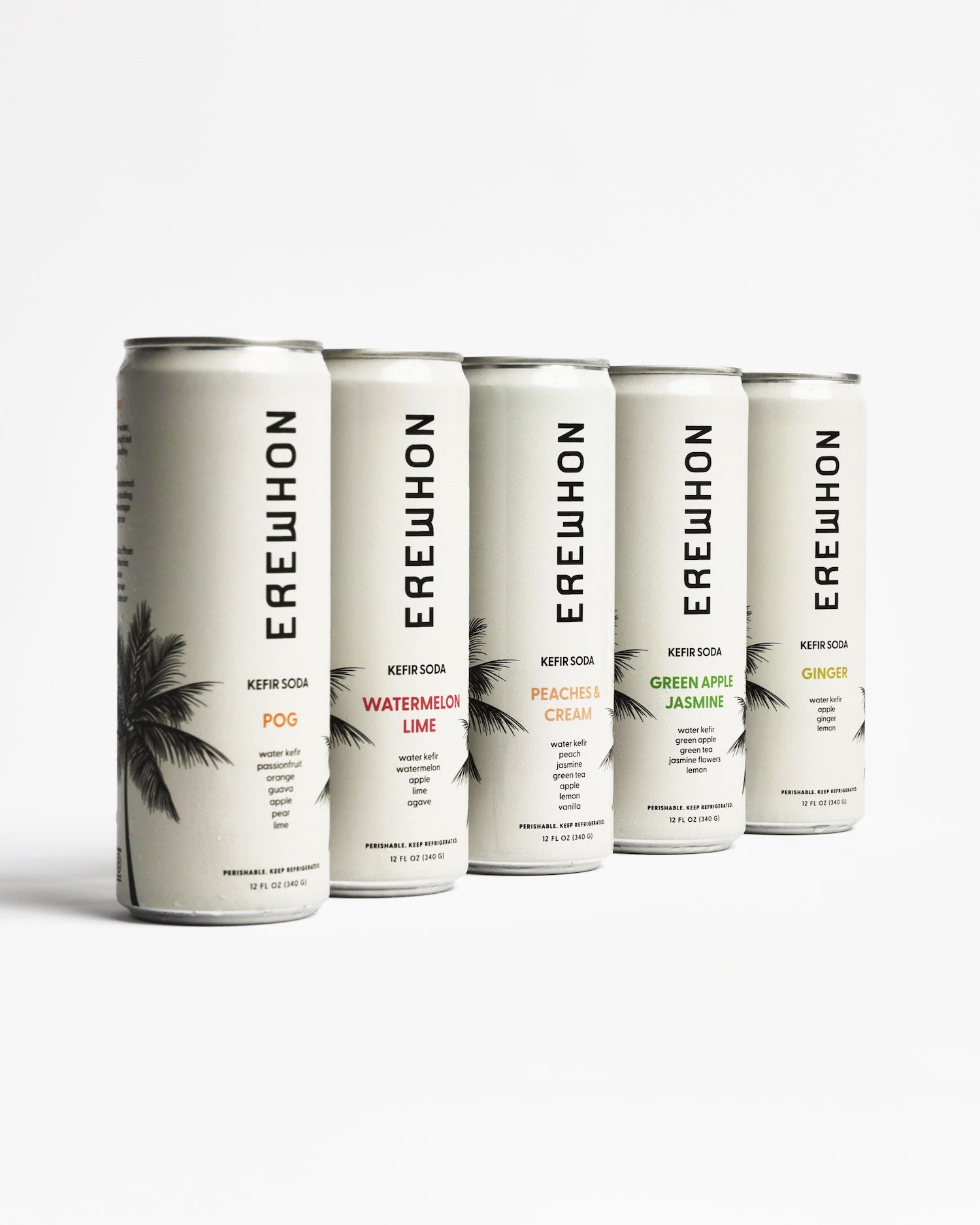 Erewhon Kefir Soda is packed with probiotics and yeasts to support a healthy microbiome. Each can contains Artesian spring water, active Kefir cultures, and cold-pressed juices for an effervescent drink with zero refined sugars.